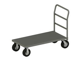 Durham platform truck. 10 in. by 2-9/16 in. semi-pneumatic bolt-on casters;(2) swivel and (2) rigid. Easy to assemble, no tools required. Gray, textured powder coat finish.