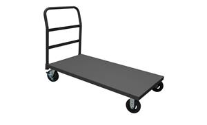 Durham platform truck. 6 in. by 2 in. Mold-On Rubber bolt-on casters;(2) swivel and (2) rigid. Easy to assemble, no tools required. Gray, textured powder coat finish.