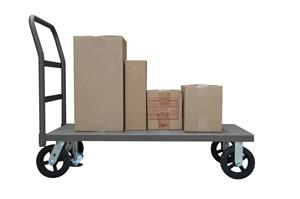 Durham platform truck. 8 in. by 2 in. Mold-On Rubber bolt-on casters;(2) swivel and (2) rigid. Easy to assemble, no tools required. Gray, textured powder coat finish.