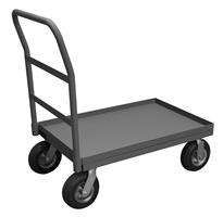 Durham platform truck. 8 in. by 2-3/4 in. pneumatic bolt-on casters;(2) swivel and (2) rigid. Easy to assemble, no tools required. Gray, textured powder coat finish.