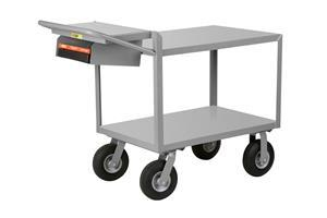 All-welded steel utility cart with cushion load wheels provide a smooth ride over rough or uneven surfaces.