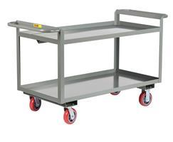 Designed for improved mobility, this all-welded shelf truck features dual handle which allows cart to be pushed from either side. Ideal for narrow aisles with tight corners.