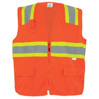 FrogWear - ANSI class 2 orange surveyor's safety vest, solid front, lightweight mesh polyester back, 3M reflective material, zipper closure, 4 pockets.