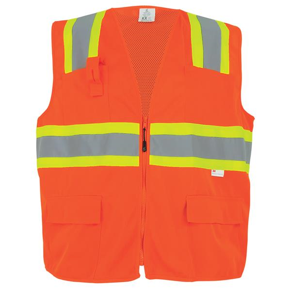 FrogWear - ANSI class 2 orange surveyor's safety vest, solid front, lightweight mesh polyester back, 3M reflective material, zipper closure, 4 pockets.