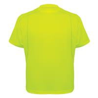 This HV yellow/green short sleeve shirt is made from moisture wicking athletic-style stretch material and features breathable mesh material located on the upper back and sides. The material draws moisture away from the skin for optimal comfort and coolness.