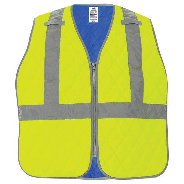 This high-visibility yellow/green cooling vest is constructed with proprietary cooling polymers in a multi-layer construction which help dissipate hot moisture from your body quickly.