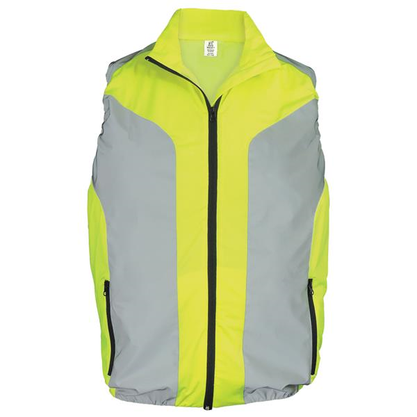 - Large vertical silver reflective material on the front and back enhances low-light visibility