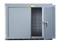 All-welded, heavy duty 14 gauge steel cabinet with your choice of center shelf, 16 gauge pegboard panel or louvered back panel.
