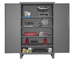 Cabinet,48 in. wide, 12 gauge steel, lockable cabinet, 4 adjustable shelves, recessed door style, Gray. This product has adjustable shelves. This product has lockable cabinet.