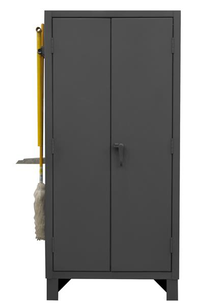 36 in. wide extra heavy duty all welded 12 gauge steel, lockable cabinet, 3 adjustable shelves, 1750 lbs capacity per shelf, 4 drawers, recessed door style, Gray, textured powder coat finish.