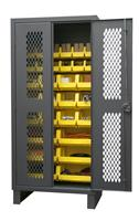 Ventilated Cabinet, 36 in. wide 12 gauge extra heavy duty ventilated cabinet with 30 yellow hook-on bins. Fully welded louvered panel back reinforces back and holds hook-on-bins. Sturdy 3-point steel locking handle with 3/8 in. diameter rods and Provisions F.
