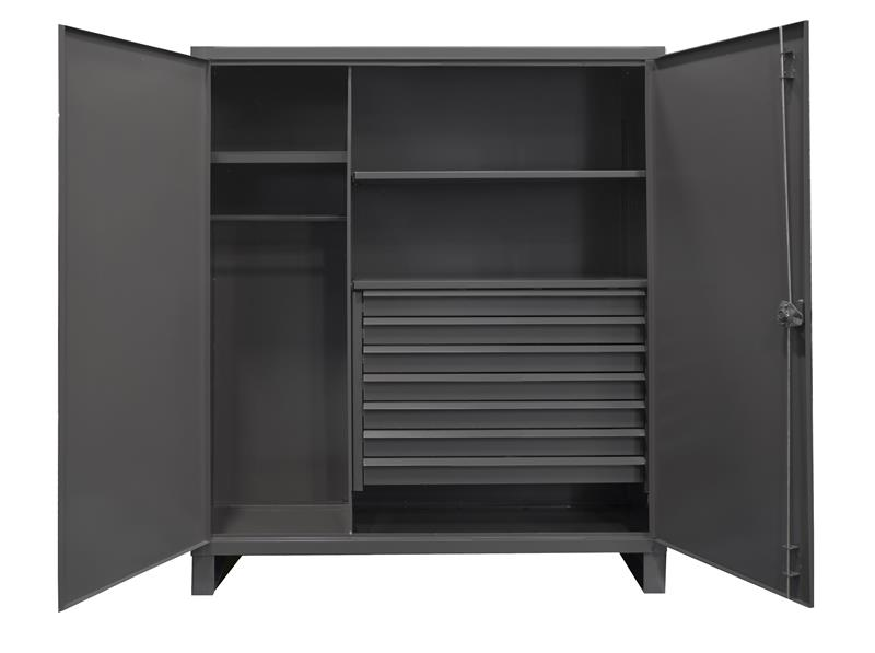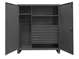 Ventilated Cabinet, 60 in. wide 12 gauge extra heavy duty ventilated cabinet with 7 drawers and 1 adjustable shelves. Fully welded louvered panel back reinforces back. Sturdy 3-point steel locking handle with 3/8 in. diameter rods and Provisions F.