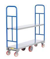 2000 lbs. capacity. Narrow 16-inch wide steel deck is ideal for busy aisles, or 24-inch for more loading capacity. Six-wheel design provides easy maneuverability and zero-turn radius.