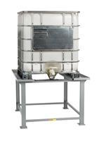 This all-welded, heavy-duty IBC Stand is built to fit most standard IBC containers and offer a much safer and easier point of access to all IBC connections and valves. The 12 gauge deck stands 34" high and features a 1-1/2" lip on all outside corners to contain the unit while still allowing easy access to the dispensing valve.