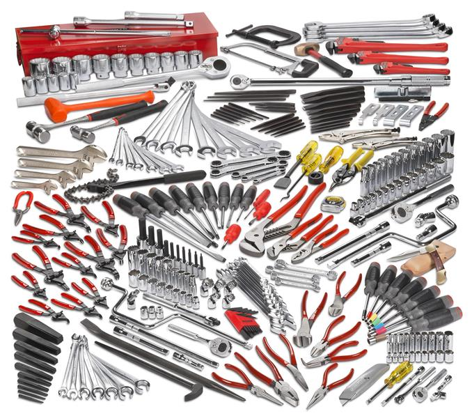 Contains: 122 Sockets and Accessories, 54 Wrenches, 17 Striking and Struck Tools, 26 Pliers, 19 Screwdrivers, 34 Miscellaneous Tools.