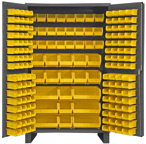 48 in. x 24 in. x 78 in. Gray Lockable Cabinet with 171 Yellow Hook-On Bins