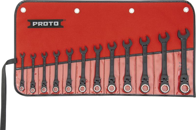 12 Piece Black Chrome Metric Combination Locking Flex-Head Ratcheting Wrench Set - Spline - Proto®