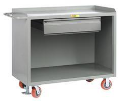 3600 lbs. capacity. All-welded, heavy-duty construction. The top work surface is 41" high and is surrounded by a retaining lip on three sides (except Butcher Block tops).