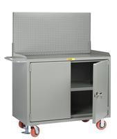 24 in. x 48 in. x 41 in. Powder Coated Steel 1- Shelf Mobile Bench Cabinet with Locking Doors and Pegboard Panel