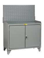 24 in. x 36 in. x 41 in. Counter Height Powder Coated Steel Solid Doors Louvered Panel Bench Cabinet with Center Shelf