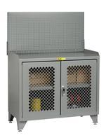 24 in. x 36 in. x 41 in. Counter Height Powder Coated Steel Clearview Doors Pegboard Panel Bench Cabinet with Center Shelf