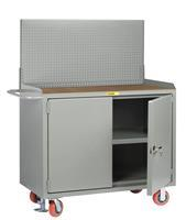 24 in. x 48 in. x 41 in. Hardboard-Over-Steel Top 1- Shelf Mobile Bench Cabinet with Locking Doors and Pegboard Panel