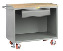 3600 lbs. capacity. All-welded, heavy-duty construction. The top work surface is 41" high and is surrounded by a retaining lip on three sides (except Butcher Block tops).