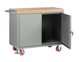 24 in. x 36 in. x 42-3/4 in. Butcher Block Top Mobile Bench Cabinet with Louvered Panel Doors