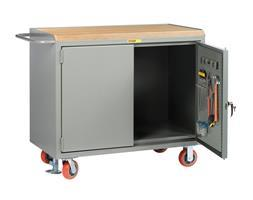 24 in. x 36 in. x 42-3/4 in. Butcher Block Top Mobile Bench Cabinet with Pegboard Panel Doors