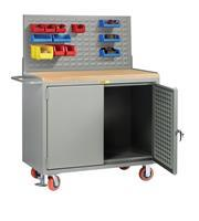 24 in. x 48 in. x 42-3/4 in. Butcher Block Top Mobile Bench Cabinet with Louvered Panel Doors and Panel