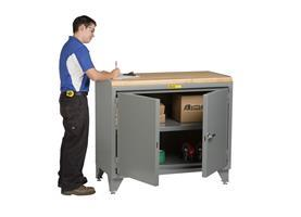 All-welded, heavy-duty construction. The top work surface is 41" high and is surrounded by a retaining lip on three sides (except Butcher Block tops).