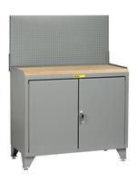 24 in. x 36 in. x 42-3/4 in. Counter Height 1-3/4" Butcher Block Solid Doors Pegboard Panel Bench Cabinet with Center Shelf