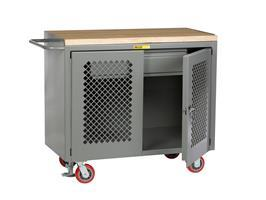 3600 lbs. capacity. All-welded, heavy-duty construction. The top work surface is 41" high and is surrounded by a retaining lip on three sides (except Butcher Block tops).
