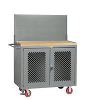 24 in. x 48 in. x 42-3/4 in. Butcher Block Top Mobile Bench Cabinet with Clearview Doors and Pegboard Panel