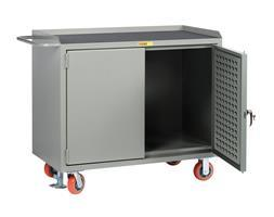 24 in. x 36 in. x 41 in. Vinyl Matting Top Mobile Bench Cabinet with Louvered Panel Doors