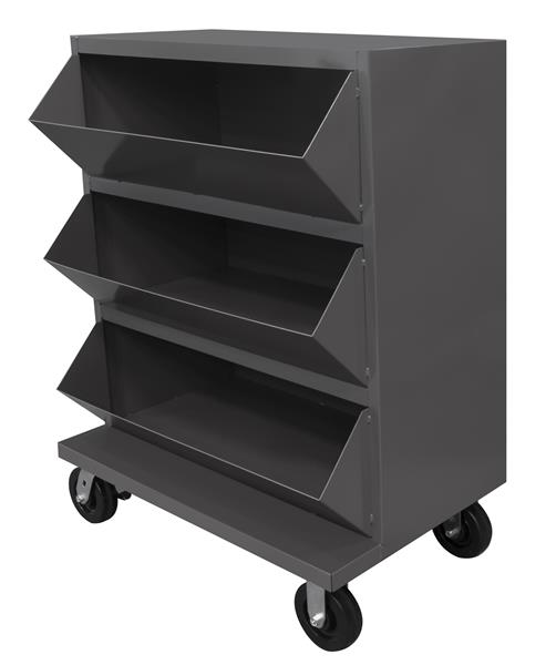 24-1/16 in. x 42-1/8 in. x 49-3/16 in. Gray Heavy Duty Mobile Storage Bins With 3 Open Bins