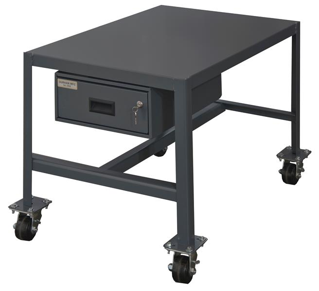 Mobile Medium Duty Machine Table-Top Shelf Only with (4) 3" x 1-13/16" Phenolic swivel casters and 1-1/2" x 1/8" angle iron frame with drawer included, gray