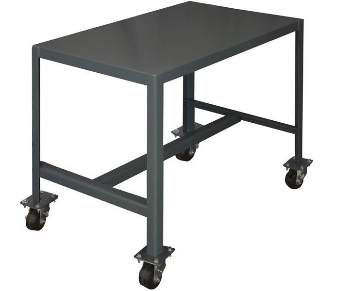 Mobile Medium Duty Machine Table-Top Shelf Only with (4) 3" x 1-13/16" Phenolic swivel casters and 1-1/2" x 1/8" angle iron frame with provisions for optional drawer, gray