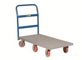 3600 lbs. capacity. Reinforced 12 gauge steel deck has center mounted rigid casters for a tighter turning radius. Swivel casters under all 4 corners provide greater load support and stability.