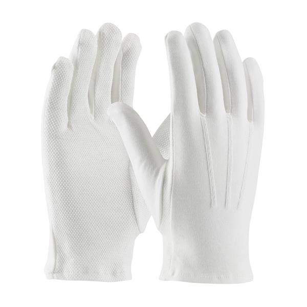 Large 100% Cotton Dress Glove, Dotted Palm with Raised Stitching on Back - Open Cuff