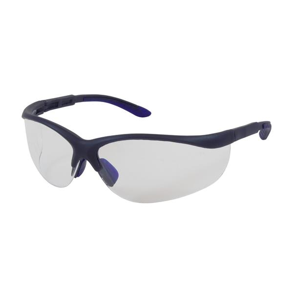 One Size Fits All Semi-Rimless Safety Glasses with Blue Frame, Clear Lens and Anti-Scratch Coating
