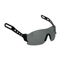 A polycarbonate retractable eyeshield with a gray lens. Designed for attaching to the JSP Evolution Deluxe range of hard hats.