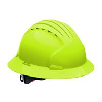 One Size Fits All Full Brim Hard Hat with HDPE Shell, 6-Point Polyester Suspension and Wheel Ratchet Adjustment