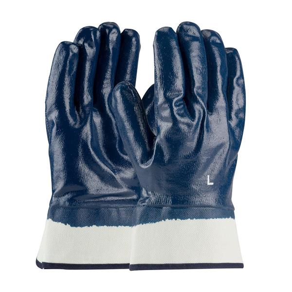 Large Nitrile Dipped Glove with Jersey Liner and Smooth Finish on Full Hand - Plasticized Safety Cuff