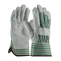 Medium inch B inch Grade Shoulder Split Cowhide Leather Palm Glove with Fabric Back - Rubberized Safety Cuff