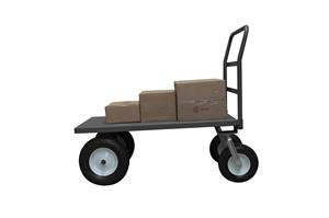 Platform Truck with 12" & 16" Pneumatic casters, (2) rigid and (2) swivel, platform lips down with removable, tubular offset push handle, gray