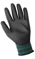 This lightweight seamless glove is a good general purpose option that features a 13-gauge nylon liner. The shell is enhanced by a black polyurethane dipped palm.