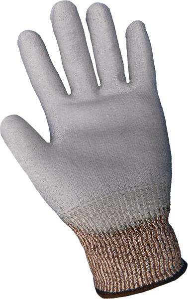 Featuring a seamless salt and pepper Tuffalene liner, this cut resistant glove is palm dipped with gray polyurethane. It offers excellent grip, lightweight comfort and dexterity. Each pair is individually packaged in a polybag.