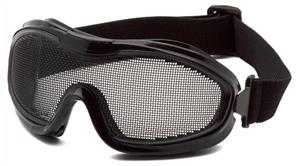 Wire Mesh Goggle - Black goggle with single wire mesh lens - Low profile design with a wide elastic strap provides a secure fit. For work environments with high humidity and flying particles. Single wire mesh lens with PVC frame. Meets ANSI Z87.1-2015 wire screen requirements.