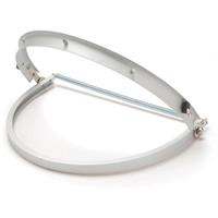 Headgear - Silver-Aluminum bracket for wide brims - Designed to fit full brim style hard hats. Deluxe aluminum construction. Universal sizing fits on the brim of most hard hats and accommodates a variety of face shields